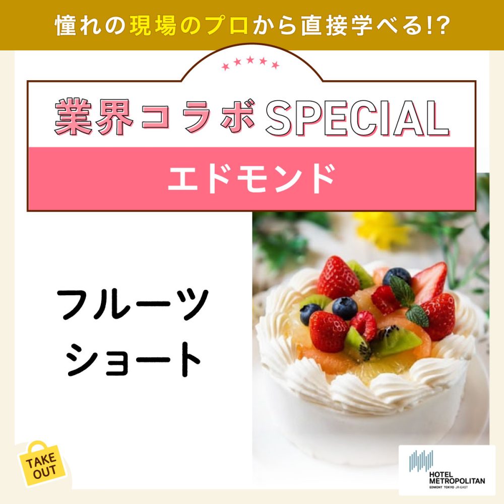 5/5(火·祝)12:00~15:30(受付開始11:30)※2回目〜参加の方は12:00受付開始業界コラボ:エドモンド フルーツショート